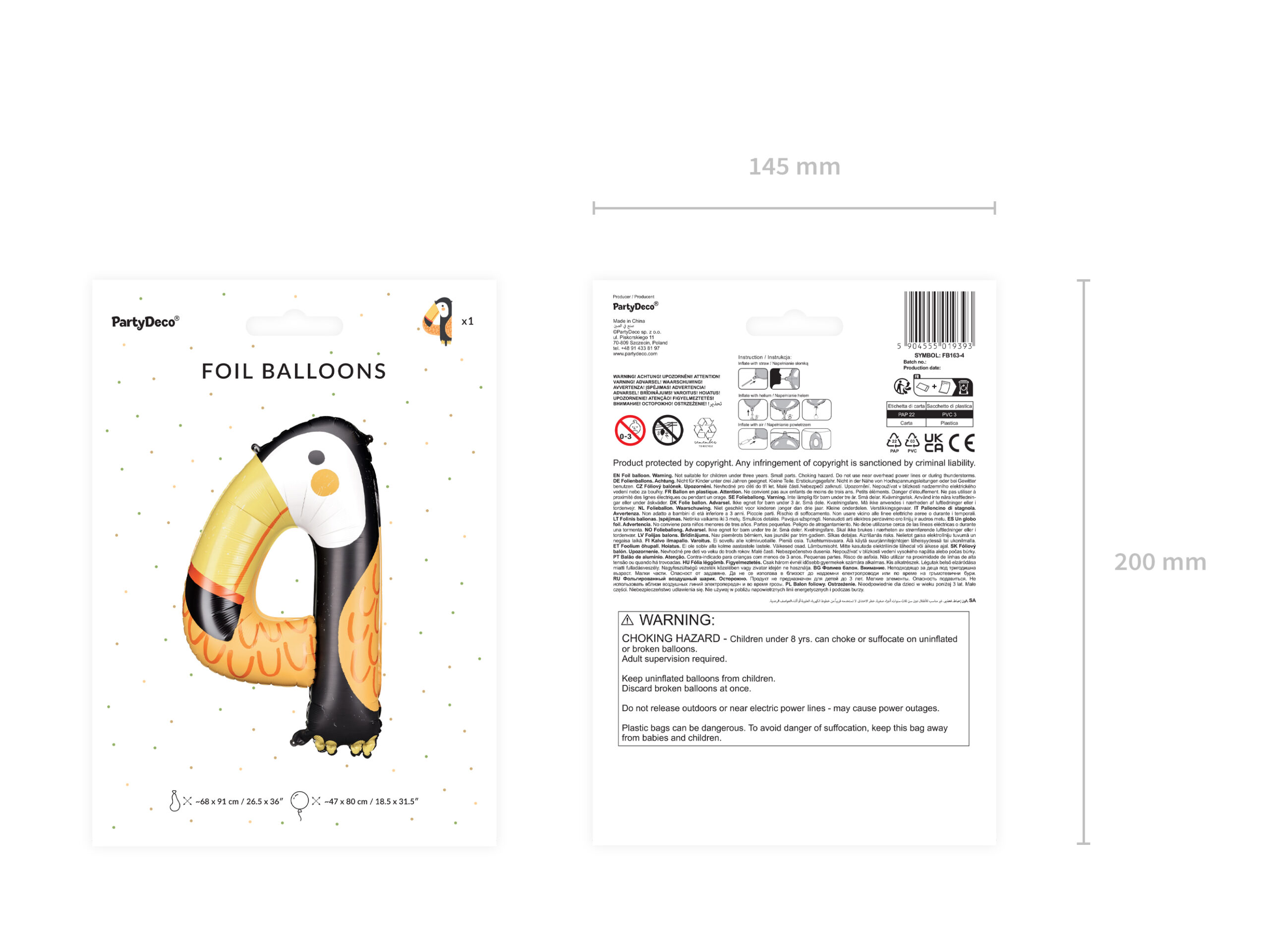• Димензии на надуван балон, приближно 47 х 80 цм.