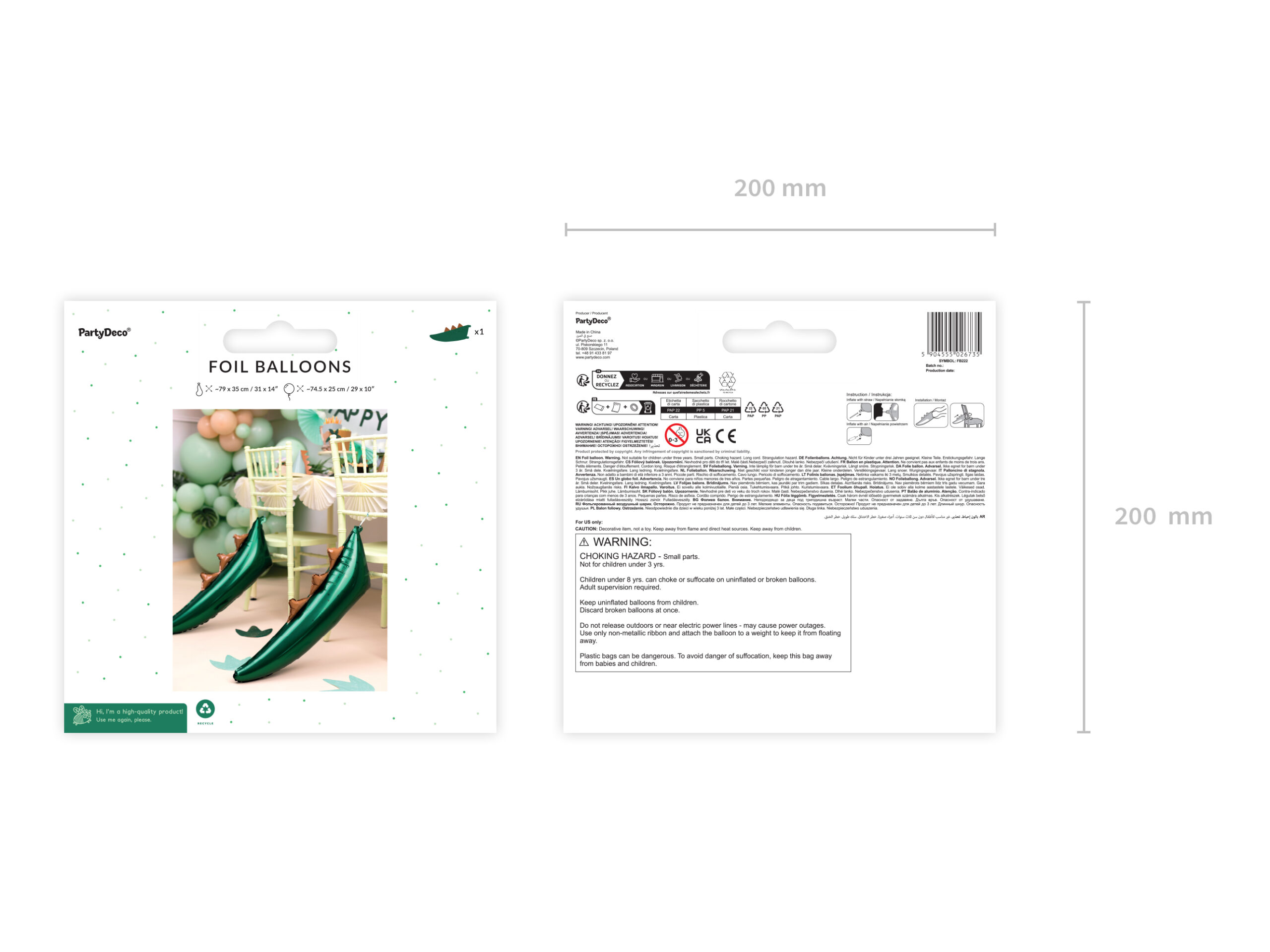 • Балон од фолија „Дино Опашка“ за полнење со воздух.