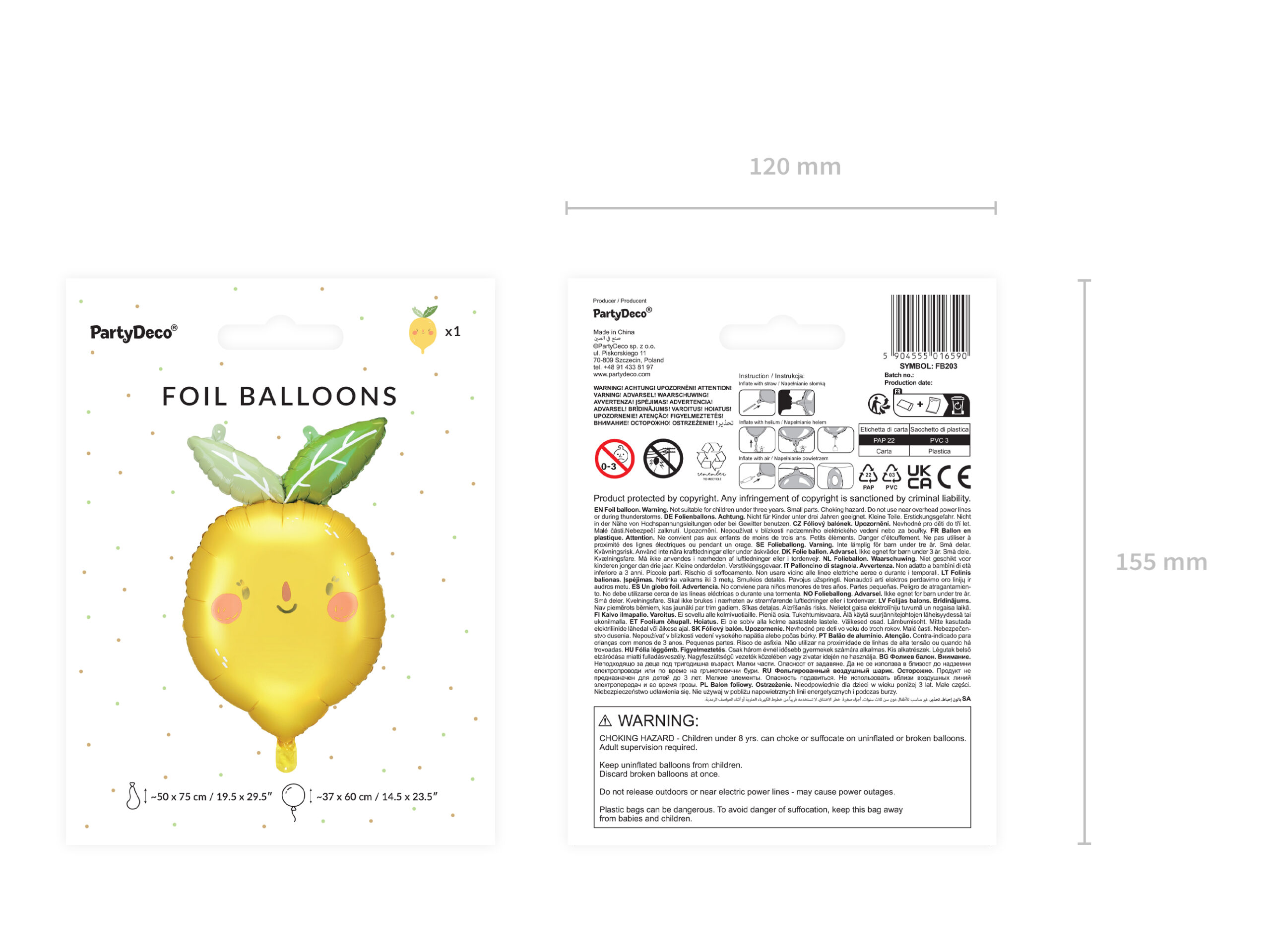 Бесплатна достава• Балон од фолија во форма на лимон наменет за полнење со хелиум или воздух.
