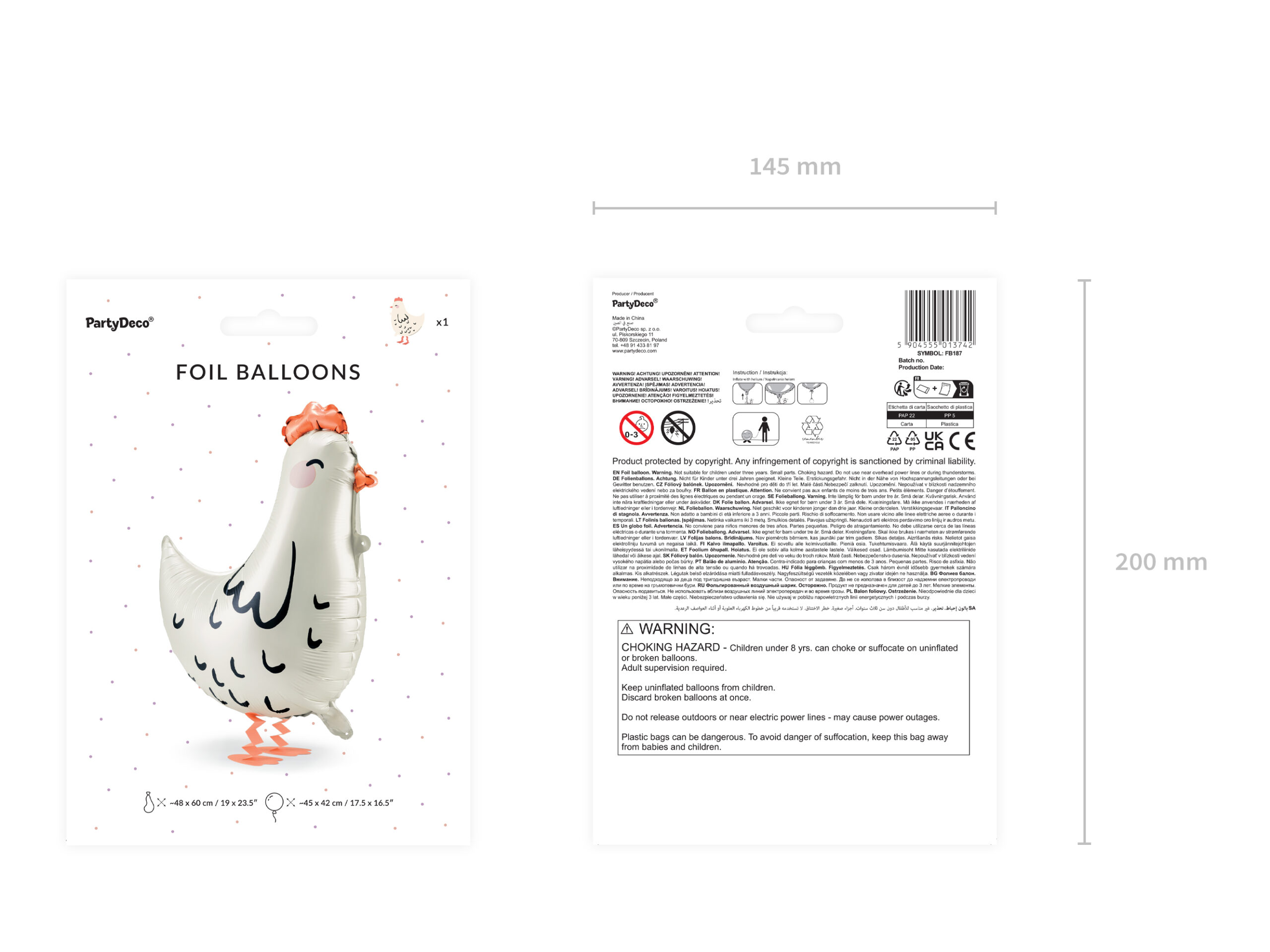 • Димензии на ненадуван балон, приближно 48 x 60 цм.