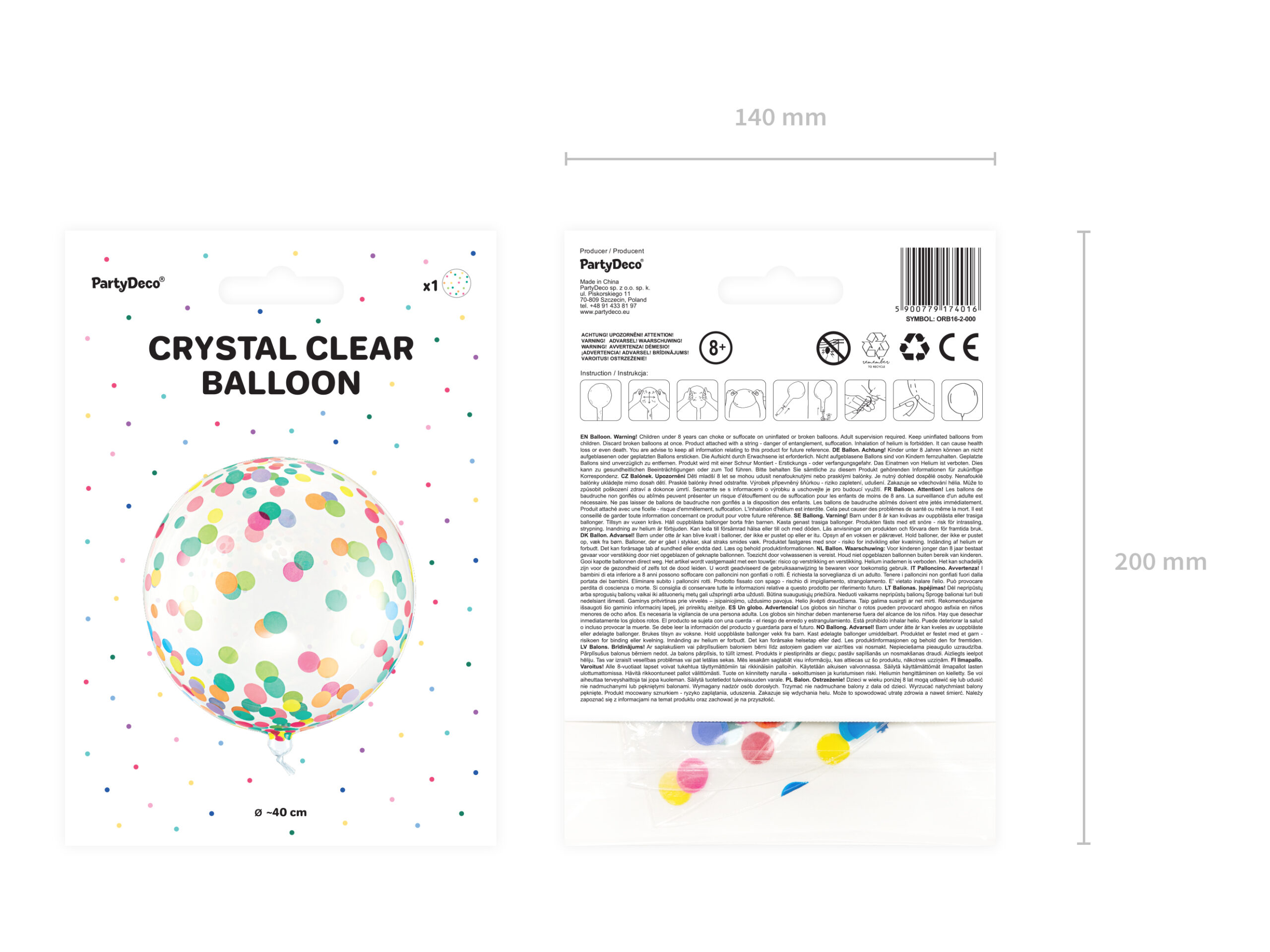 • Проѕирен кружен балон со шарени точки наменет за полнење со воздух или хелиум. • Дијаметар 40цм.