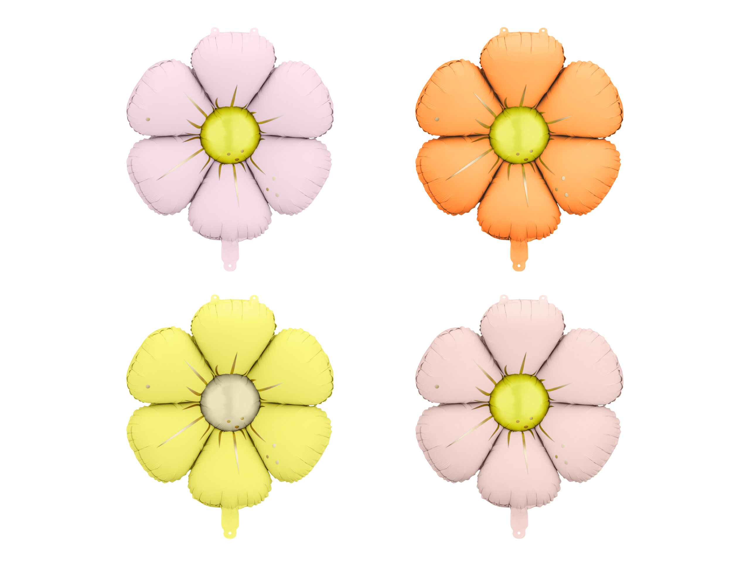 • Сет од 4 балони од фолија во форма на цветови во различни бои, наменети за полнење со воздух.